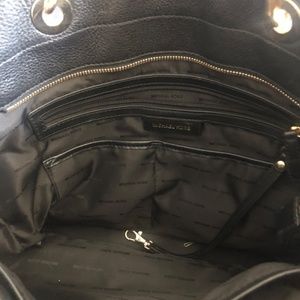 Large Michael Kors bucket bag. Lightly used. Good condition. 2 small scuffs on the back. Shoulder strap and crossbody strap with gold accents.