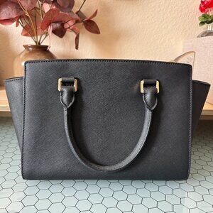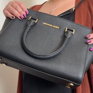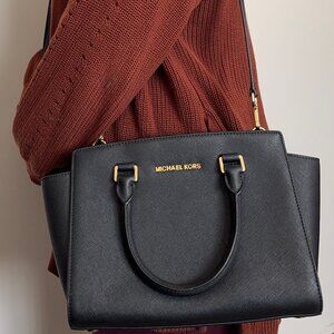 Michael Kors Selma Saffiano Leather Medium Satchel in Black with gold hardware