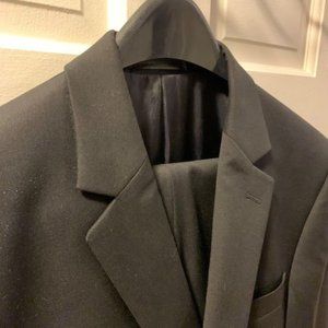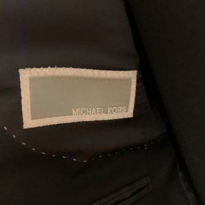 Black Michael Kors suit includes suit jacket and pair of pants.