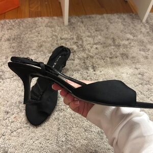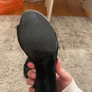 These heels have a more beach feel with straps that wrap around your feet. They are black with a thin heel and some shimmer! Slightly used, excellent condition.