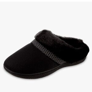 Isotoner Black Microsuede Memory Foam Slippers with Indoor/Outdoor Sole