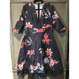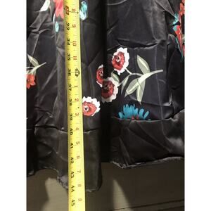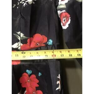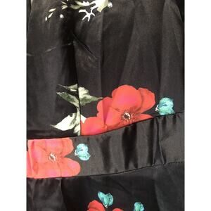 Black Midi Dress Flower V-Neck White Red Green M 10 12 See Measurements