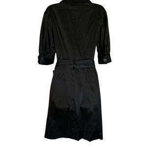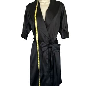 This elegant black midi dress features a luxurious satin finish and a flattering wrap-style front. Its mid-length cut and minimalist design make it a versatile choice for any occasion, ensuring both comfort and sophistication. Thicker fabric (not like thin satin).