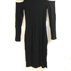 Black Ribbed Midi Dress with cutout shoulders. Never been worn, tag is still on. Just wrinkled from being in my closet. TAKING OFFERS.