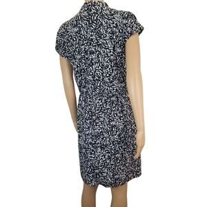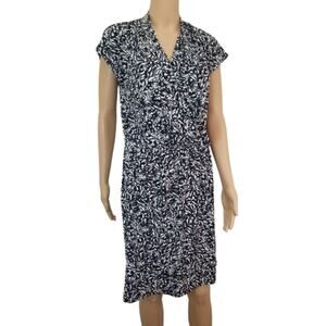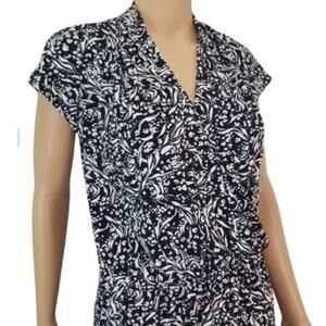 Black Midi H Halston V Neck Short Sleeve Stretch Elastic Waist Dress Size Small