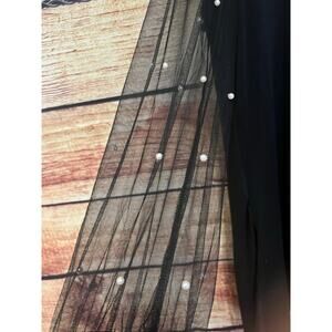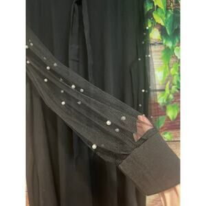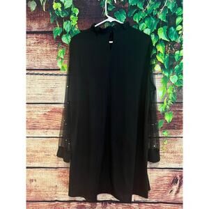 Black Midi Shift Dress PEARL Embellished Sheer Mesh Sleeves Cocktail Party XL