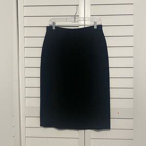 This black midi pencil skirt features a sleek, tailored silhouette that falls elegantly to a midi length. Crafted from a structured fabric, it offers a polished look ideal for professional settings. Its minimalist design ensures versatility and timeless appeal.
