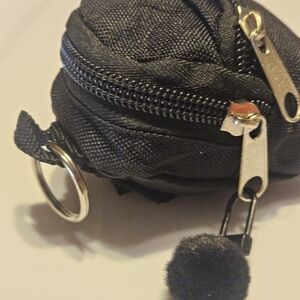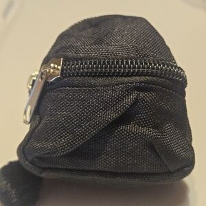 Stylish black mini backpack keychain. Perfect for accessories.