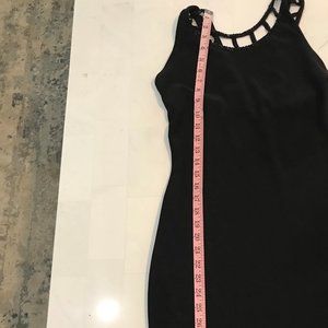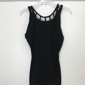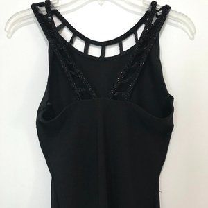 Body con black mini dress with bead detail on the neckline.