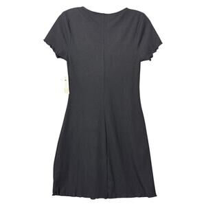Black Mini Dress Babydoll Rib Knit Lettuce Edge Tie Front BP S Whimsigoth Retro