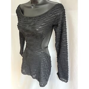 Black Mini Mesh Swim Cover Dress Size S Open Back Sexy Festival Club Minimalist