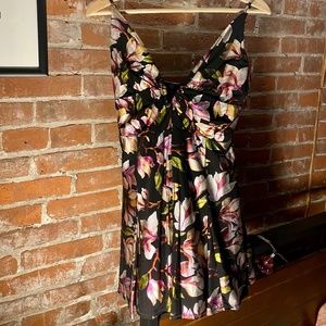 Black Mini NBD dress with Floral Print with adjustable straps. NBD collaboration with Revolve.