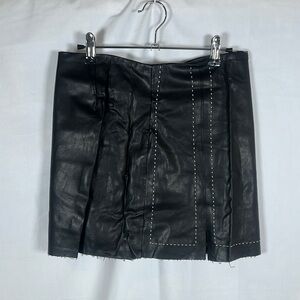 This sleek black mini skirt features a pencil silhouette, perfect for a night out or cocktail event. The pleated design and slit add a touch of sophistication and modern flair, making it a standout piece in any wardrobe. Its fitted style ensures a flattering fit, while the glossy finish enhances its chic appeal.