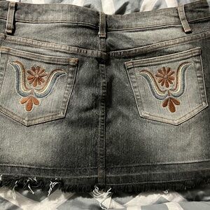 This gray mini skirt features a stylish frayed hem, perfect for a night out. Its edgy design and monochromatic palette make it a versatile addition to any casual wardrobe.