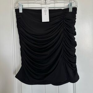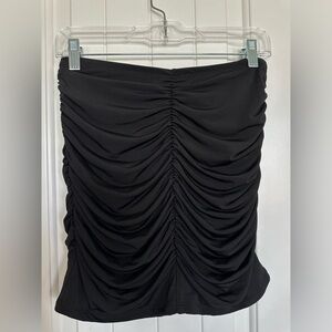 Women’s Black Mini Skirt New-never worn Size medium Ruching on front and back Small slit on front Non smoking home