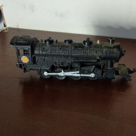 Detailed black model train featuring a Shell logo. Perfect for collectors.