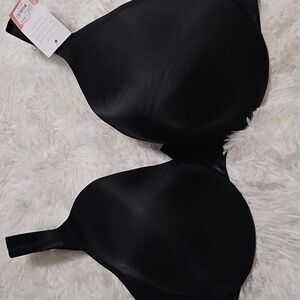 This black bra features molded cups for enhanced shape and support, complemented by thin, adjustable straps for a personalized fit. Crafted from a smooth, stretchy fabric, it offers comfort and flexibility, making it an ideal choice for everyday wear.