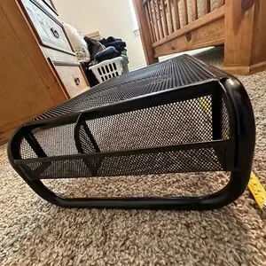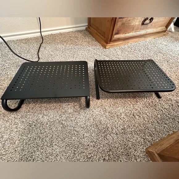 Sleek black monitor stand riser. Perfect for elevating your screen.
