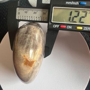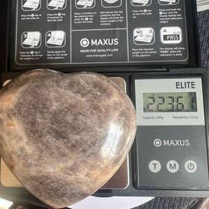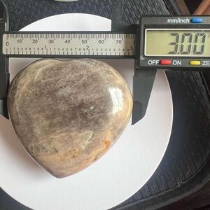 A Black Moonstone with Silver Sheen large puffy heart, accompanied by a silver-tone stand for decorative display, radiates mystical allure. This captivating stone is believed to enhance intuition, provide emotional healing, and offer protection. Its shimmering surface symbolizes new beginnings and inner strength.