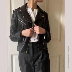 Black Motorcycle Leather Jacket by Nine West, Women’s size S | Fashionable, Sleek Leather Streetwear Jacket