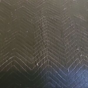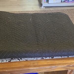 Cozy black quilted blanket with a stylish pattern. Has some missing stitching. It is approximately 38 inches by 48 The type of quilt used to protect items while moving
