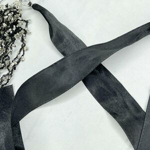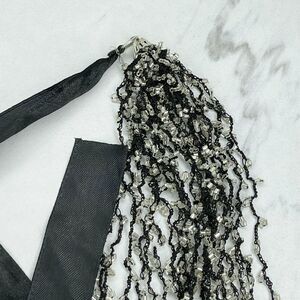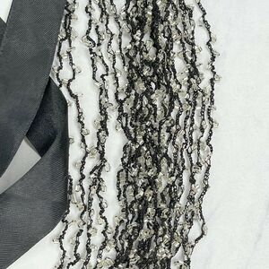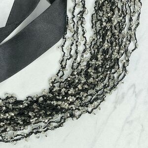Black Multi Strand Beaded Ribbon Tie Necklace