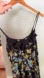 Stylish black dress with floral print. Features blue and yellow flowers. Perfect for casual outings. Vintage.