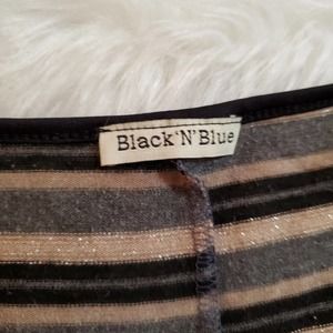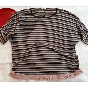 Black N Blue Womens Pullover Dolman Sweater Size 2XL Black Gold Striped Fringe