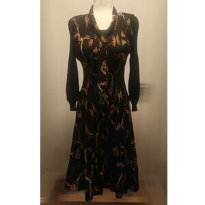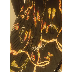 Black N by Nancy pleated Butterfly equestrian print sz L *issey miyake style *