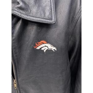 Black NFL Denver Broncos Reebok Leather Jacket Size MEDIUM - Damaged Please Read