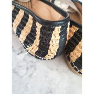 • Raffia upper with eye-catching black and natural stripes
