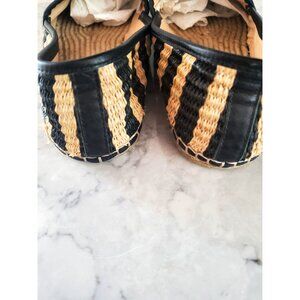 Black Natural Raffia Espadrilles Loeffler Randall Flat Woven Leather Trim Size 6