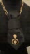 Black Neck Tie with Gold Chain and Lion Medallion Necklace Handmade