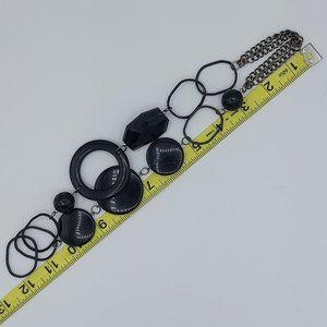 Black Necklace Faceted Resin Beads Large Link Chain Light Weight 24" Silver Toned