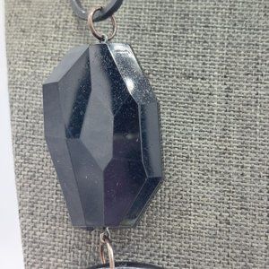 Black Necklace Faceted Resin Beads Large Link Chain Light Weight 24" Silver Tone