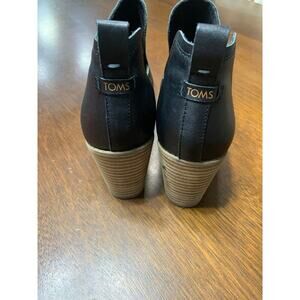 Black Neutral Leather Wedge Ankle Booties Women 11 Preppy Fall Festival Boho