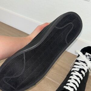 Nike men’s black high top blazers they’re in pretty good condition only work a couple times they was a custom shoe the back part of it says groom on it so selling cheaper you could easily cover the shoes are a 11.5