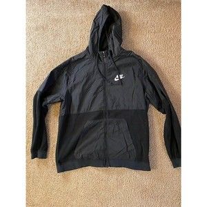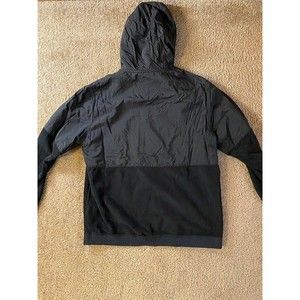 Black Nike Hybrid Jacket: Discover the perfect blend of style and functionality with this unique black Nike jacket. The upper half boasts a waterproof and windbreaker material, offering excellent protection against the elements. The lower half, crafted from soft cotton, provides comfort and breathability. This innovative design combines the durability of outdoor gear with the comfort of everyday wear, making it an ideal choice for varying weather conditions. With its sleek look and practical features, this jacket is a standout piece for any active wardrobe.