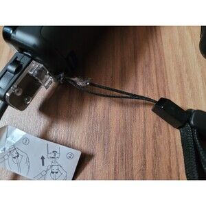 Excellent used condition, but the string for the strap is frayed and doesn't have much life left (see photos). Includes matching cover grip.
