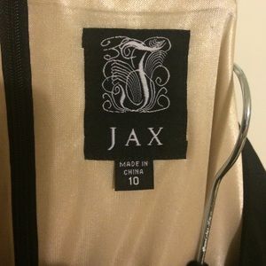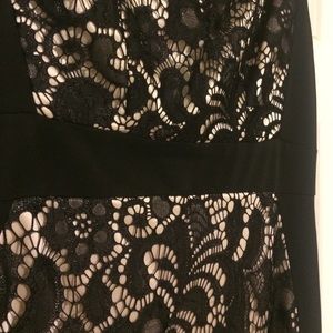 Nude and black fully lined dress..Worn once to a wedding...back zipper with small slit at back bottom..Very flattering!