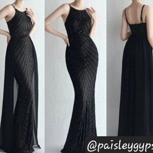 Black, O Neck Sleeveless, Detachable Skirt, Contrast Sequined Mermaid G…