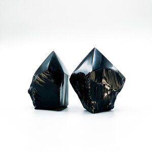 This listing is for one Black Obsidian Crystal, Rough, Polished, Gemstone, Energy Generator Point. Black obsidian is formed when a volcano erupts and the lava cools very quickly. Black obsidian stone is also known as volcanic glass, xaga, and royal agate because of the depth of its color.