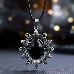 Black Obsidian Natural Stone Sunflower Pendant Hollow Pattern Gemstone Neckla…