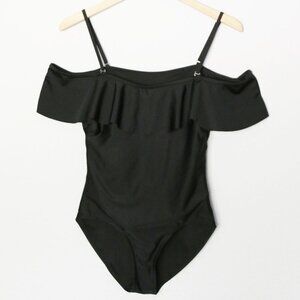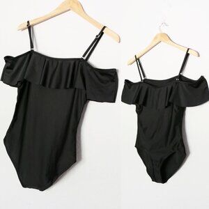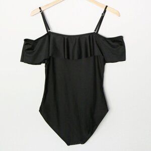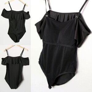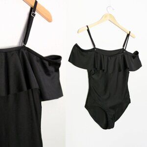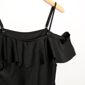 Black Off The Shoulder or Strapless Ruffle One Piece Swimsuit S Padded Modest