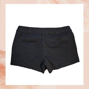 Pre-loved. Black, classic, stretch, chino shorts. Complete with two front pockets, 2 faux back slip pockets, and double hood and eye zipper closure.