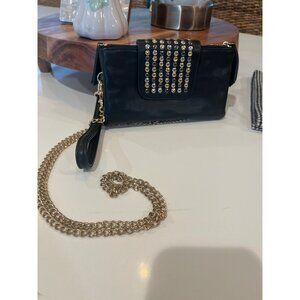 Black Olivia Miller Leather Studded Wristlet With Gold Chain Strap & Zipper Clos