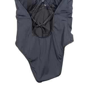 Black One Piece Bathing Suit Size Large Flared V Neckline Criss Cross Back