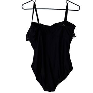 Black One Piece Ruffled Tank Swimsuit Kona Sol Large Removable Straps NWOT