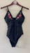 Black One Piece Swimsuit Red Floral Embroidery Removable Bra Cups Women's M