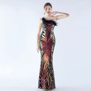 This elegant black gown features a one-shoulder neckline and a bodycon fit, perfect for prom or cocktail events. The sleeveless design adds a modern touch, while the fitted silhouette accentuates your figure beautifully. Its classic style ensures you'll make a lasting impression at any special occasion.